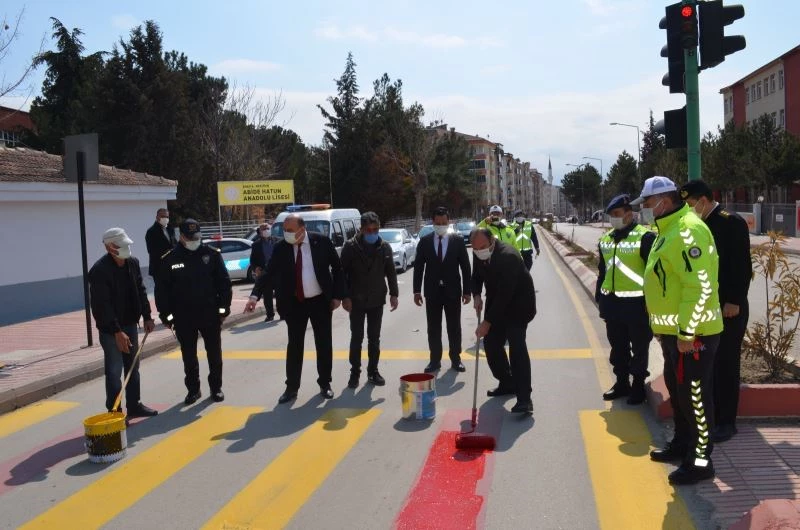 Amasya’nın Merzifon ilçesinde yaya geçitlerine kırmızı çizgi çekilerek trafikte yaya önceliğine dikkat çekildi.