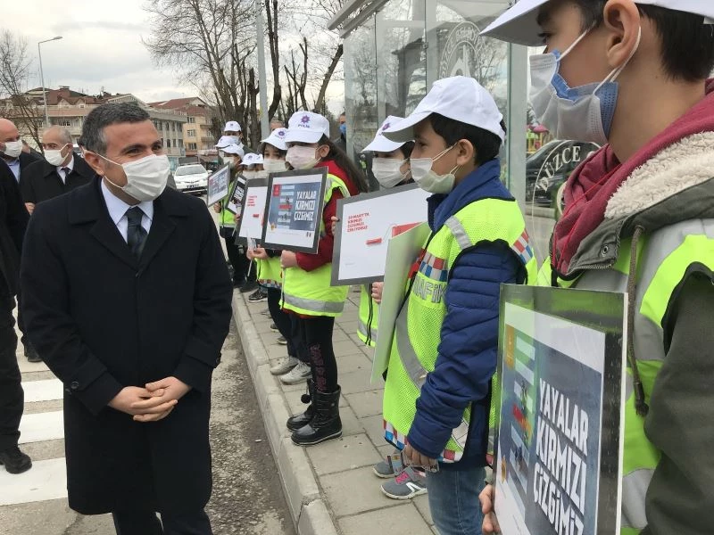 Türkiye genelinde başlatılan ’Kırmızı çizgimizi çekiyoruz’ projesi kapsamında kavşak giriş ve çıkışlarıyla, yaya ve okul geçitlerine yaklaşırken yavaşlama, geçmek üzere olan yayalara ilk geçiş hakkı verilme farkındalığının oluşturulması hedefleniyor. Proje kapsamında Düzce’nin merkez ilçesine bağlı Azmilli Mahallesi Gazhane Caddesi’nde bulunan Azmimilli İlkokulu önünde program düzenlendi. Programa katılan Düzce Valisi Cevdet Atay, öğrencilere kırmızı düdük dağıtarak, öğrencilere yaya geçiş üstünlüğü hakkında bilgiler verdi. Atay, çocukların trafikte ailelerinin de kurallara uymadığı takdirde kırmızı düdükler ile uyarmalarını istedi. Vali Atay, beraberindeki İl Emniyet Müdürü Mehmet Ali Akkaplan ve çocuklar ile yaya geçidine kırmızı çizgiyi çekti.