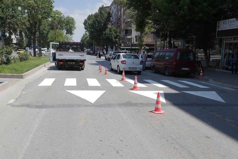 Kütahya’da, üst yapı çalışmaları tamamlanan cadde ve yollarda yol çizgi çalışmalarıyla birlikte şehir merkezinde yaya geçit çizgileri yeniden boyanarak araç ve yayaların trafik güvenliği sağlanmaya devam ediyor.