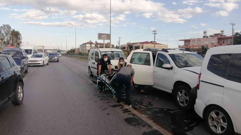 Antalya’nın Manavgat ilçesi D-400 Karayolu Hatipler Yenimahalle’de yaya geçidindeki yayaya yol vermek için duran araçlar zincirleme kazaya neden oldu. Kazada, 2 kişi yaralandı.