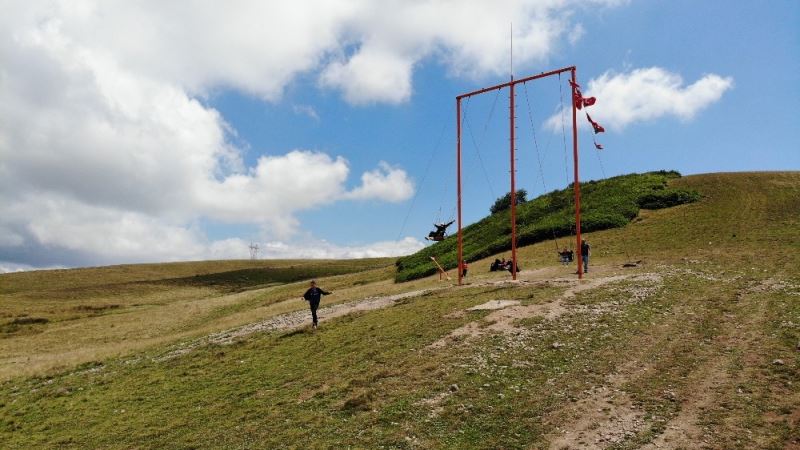 Tokat’ın Reşadiye ilçesinde yaylada kurulan dev salıncağa binenler farklı bir heyecan yaşıyor.