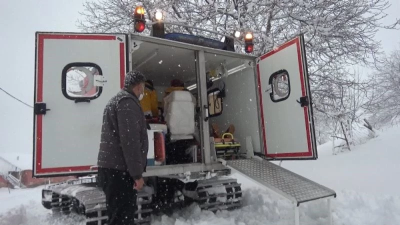 Yaylada mahsur kalan hastaya paletli ambulansla ulaşıldı