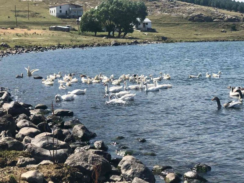 Ardahan’ın Çıldır ilçesinde bulunan Güvenocak köyü yaylasına yazları giden herkes geçimini kazdan sağlıyor.