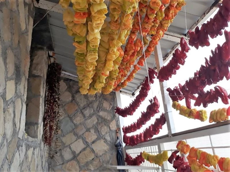 Yaz mevsiminin sıcak günlerinde kışlık ürünler hazırladıklarını belirten Mustafa Uludağ, “Kahramanmaraş yöresinde zahire ayı başladı ve kuruluklar balkonlarda görülmeye başladı. Kente özgü başta patlıcan, salatalık ve biber gibi ürünler temizlendikten sonra ip yardımıyla dizilerek balkonlara asılarak kurutulmaya bırakılıyor. Kışa hazırlık olarak başta tarhana olmak üzere konserve, salça ve sumak ekşisi ile pekmez de hazırlıyoruz. Yani havalar soğuduğu ve kış mevsimi geldiğinde ise bu ürünleri tüketiyoruz” dedi.