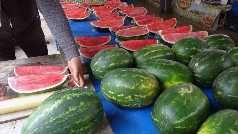 Muğla’nın Menteşe ilçesinde yaz gelmeden karpuz, üzüm gibi meyveler pazar tezgahlarında yerini aldı.