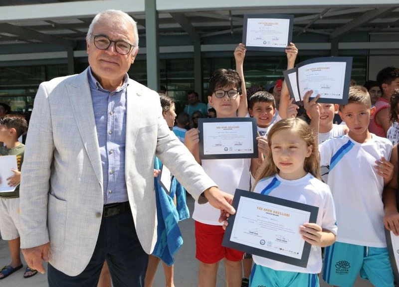 Çalı Yüzme Havuzu ve Konak Olimpik Yüzme Tesisleri’nde iki hafta boyunca eğitim alan 800’ü aşkın öğrenci sertifika heyecanı yaşadı. Nilüfer Belediyespor Yönetim Kurlu Üyesi ve Yüzme Branş Sorumlusu Fehmi Gökçen’in elinden sertifikalarını alan öğrenciler mutluluklarını ebeveynleri ile paylaştı.