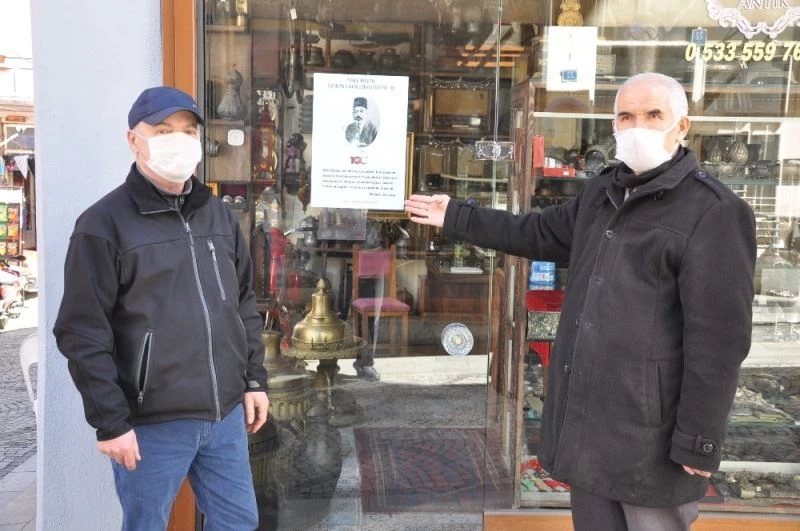Simav esnaflarından Zeki Şen, iş yerine asılan İstiklal Marşı için gurur duyduklarını belirtti.