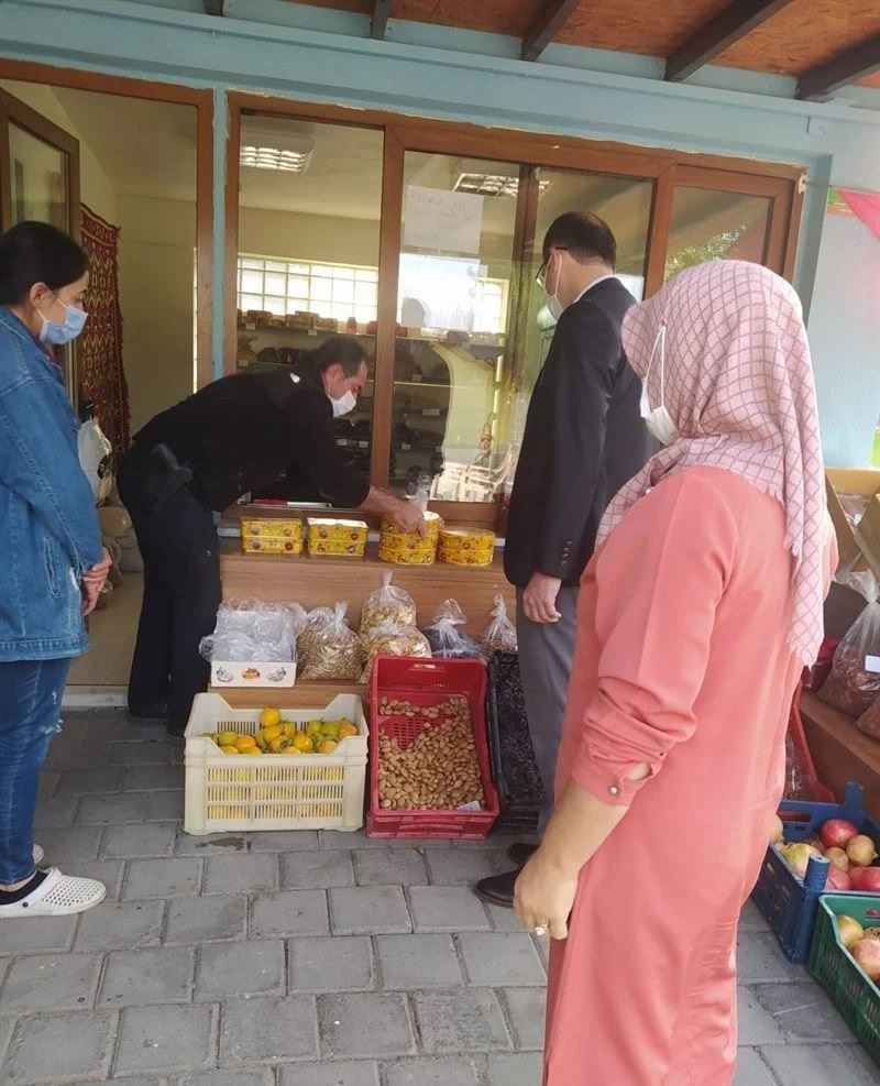 Bu arada, Yazıhan Kaymakamı Bülent Şimşek de, üretici pazarını ziyaret ederek, Yazıhan standındaki ürünleri inceledi.