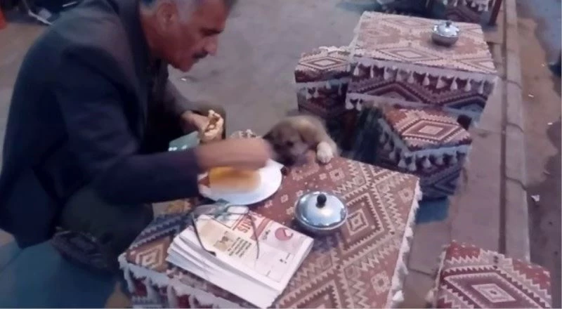 Göle ilçe merkezinde Gürbüz Küpeli adlı vatandaş oturduğu kafede köfte siparişi verdi. Yemeğini yerken bir sokak köpeğinin yanına yaklaştığını gören Küpeli, “Gel beraber yiyelim” diyerek yemeğini köpekle paylaştı. Bir taraftan kendisinin bir yandan da köpeğin karnını doyuran vatandaşın görüntüsü izleyenleri duygulandırdı.