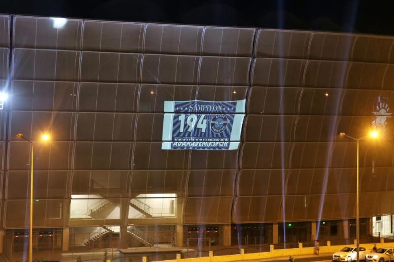 Ankara Eryaman Stadyumu'ndaki karsilasma öncesi ve karsilasma sirasinda merkez Sariçam ilçesinde yapimi devam eden Adana Sehir Stadyumu'nun dis cephesi, mavi lacivert renklerde isiklandirildi, gökyüzüne dogru yapilan isik sovuyla görsel bir sölen olusturdu.