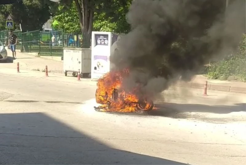 Olay, Kocaeli’nin Derince ilçesi Çınarlı Mahallesi Çenesuyu Caddesi’nde meydana geldi. Edinilen bilgiye göre, Emir M., idaresindeki 41 AHD 464 plakalı motosiklet, seyir halindeyken bir anda alev aldı. Yangını fark eden sürücü hemen motosikletinden inse de ayağının yanmasına engel olamadı. Motosikletin alevlere teslim olduğunu gören vatandaşlar, durumu 112 Acil Yardım ekiplerine bildirdi. İhbar üzerine adrese sağlık, itfaiye ve polis ekipleri sevk edildi. Kısa sürede adrese ulaşan sağlık ekipleri, yaralanan sürücüyü ambulansa alarak hastaneye götürdü. Yanan motosiklet ise, çevredeki esnaf tarafından söndürüldü. Daha sonra bölgeye ulaşan itfaiye ekipleri ise, motosikletin yeniden yanmaması için soğutma çalışması gerçekleştirdi. Emir M.’nin bir çiğköfte dükkanında kurye olduğu ve motosikletini yeni aldığı öğrenildi. Polis ekipleri yangınla ilgili inceleme başlattı.