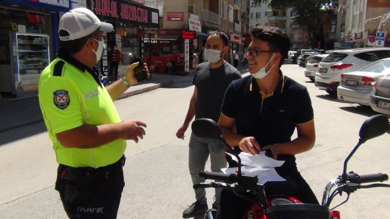 İlçe Emniyet Müdürlüğüne bağlı trafik ekipleri gelen şikayetler ve artan motosiklet kazalarının ardından uygulamaları sıklaştırdı. Ekipler ilçenin farklı noktalarında motosikletler üzerinde uygulama yapıyor. Mahmutesatbey caddesi girişinde yapılan motosiklet ve ters yön uygulamasında trafik kaidelerine uymayanlara ceza yağdı. Motosikleti yeni alan bir sürücüye, evrakları tam olmasına rağmen, ters yönden gelmesi üzerine 132 TL para cezası kesildi. Sürücü ceza yedikten sonra tekrar geri dönüp normal yoldan yoluna devam etti. Yaklaşık bir saat süren uygulama esnasında ters yönden gelen bir araç sürücüsü de durdurularak ceza kesildi. Ekipler muhtelif noktalarda gece gündüz denetimlere devam edecek.