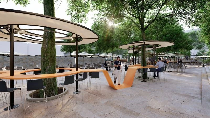 Yeni düzenlemeden sonra Yeni Cuma, kafeterya ve park alanı olmak üzere iki bölümden oluşacak. Parkın odak nokta olması planlanan çay bahçesi, geniş ve kullanılabilir ortak alanda ziyaretçilerini ağırlayacak. Meydan ile kafeteryanın kot farkıyla birbirinden ayrılacağı yeni düzenlemede çay bahçesi de büyütülecek. Peyzajı da yenilenecek olan Yeni Cuma’da uzun ömürlü, alanın toprağına uygun, dört mevsimlik bitkiler tercih edilecek.