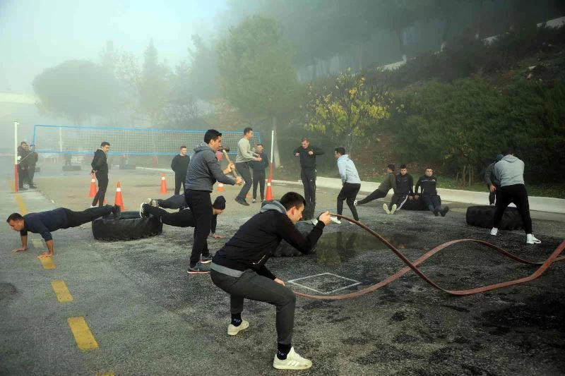 Muğla’daki itfaiye olaylarına kısa sürede müdahale etmeleri ile bilinen Muğla Büyükşehir Belediyesi’nin İtfaiye erleri, yeni memurlarını da bu tempoya hazırlıyor. İlk spor eğitimlerini sisli ve soğuk havada gerçekleştiren yeni itfaiye erleri, güç kondisyon eğitimi, vücut kaslarının güçlendirilmesi, hortum toplama ve açma gibi hareketler yaptılar. Zorlu eğitimden geçen erlerin spor eğitimleri komando eğitimlerini aratmadı.