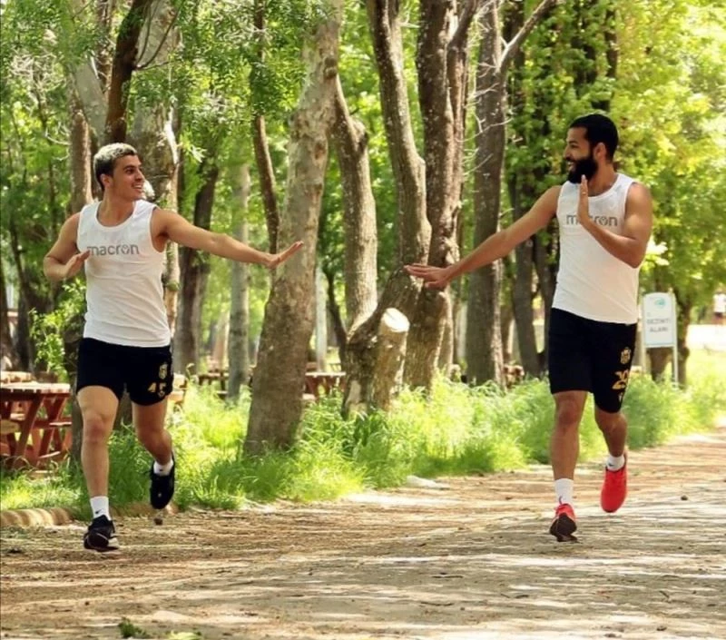 Sarı-kırmızılı takımın Mısırlı futbolcusu Karim Hafez ile Faslı futbolcusu Issam Chebake koşu esnasında sosyal mesafe kurallarını dikkate aldıklarını ilginç bir kareyle gösterdi.