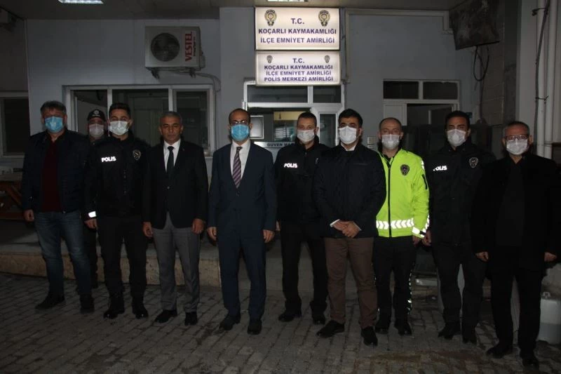 Koçarlı Kaymakamı Ersin Tepeli ve Koçarlı Belediye Başkanı Nedim Kaplan yılın son gecesinde görevi başında yeni yıla giren polis, jandarma, sağlık ve itfaiye personellerine ziyaretler gerçekleştirerek yeni yıllarını kutladı.