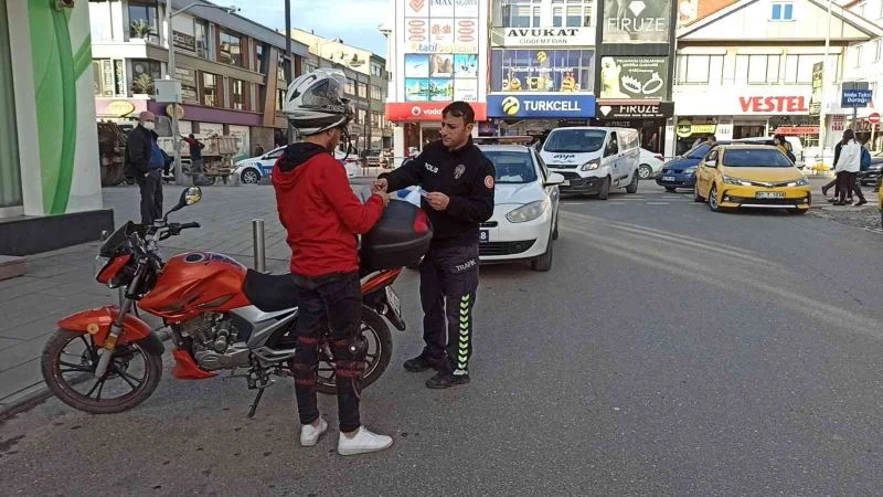 Düzce’de kış mevsimi olmasına rağmen motosikletlerine binerek güneşin tadını çıkartan sürücüler trafik ekiplerine takıldı. Kentin çeşitli noktalarında uygulama yapan Trafik Tescil ve Denetleme Şube Müdürlüğü ekipleri, motosiklet sürücüleri üzerinde uygulama yaptı. Özellikle motosiklet sürücülerinde kask denetimi yapan ekipler, ayrıca sürücülerin ehliyetini ve motosikletlerin evraklarını da kontrol etti.