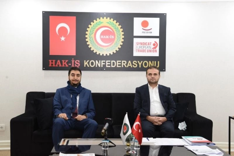 Yeniden Refah Partisi heyeti, HAK-İŞ Genel Merkezi’ni ziyaret etti. Asgari ücret tespiti ile ilgili gelişmeler ve işçinin ekonomik ve sosyal durumu hakkında görüş alışverişinde bulunulan ziyarette, HAK-İŞ Konfederasyonu Genel Başkan Vekili Dr. Osman Yıldız heyeti ağırladı. "Asgari ücreti iktidar takdiri değil ülke ekonomisinin matematiği belirler" diye yapılan açıklamayı hatırlatan Dr. Öztek, “Çalışmaları da bu şekilde yaptığımızda ortaya çıkan rakam 3 bin 488 liraydı. Maalesef bu böyle olmadı. Fakat burada çalışanın hakkının verilmesi esas olmalıydı. 18 yılda 7 milyonu aşkın asgari ücretlinin Türkiye ekonomisinin büyümesindeki rolde hakkını alması olmasıydı” ifadelerini kullandı.