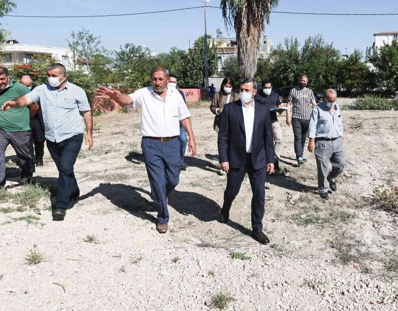 Yüreğir Belediye Başkanı Fatih Mehmet Kocaispir, Yenidoğan Mahallesi’nde inşaatına başlayacakları Çok Amaçlı Mahalle Evi proje alanında incelemelerde bulundu.