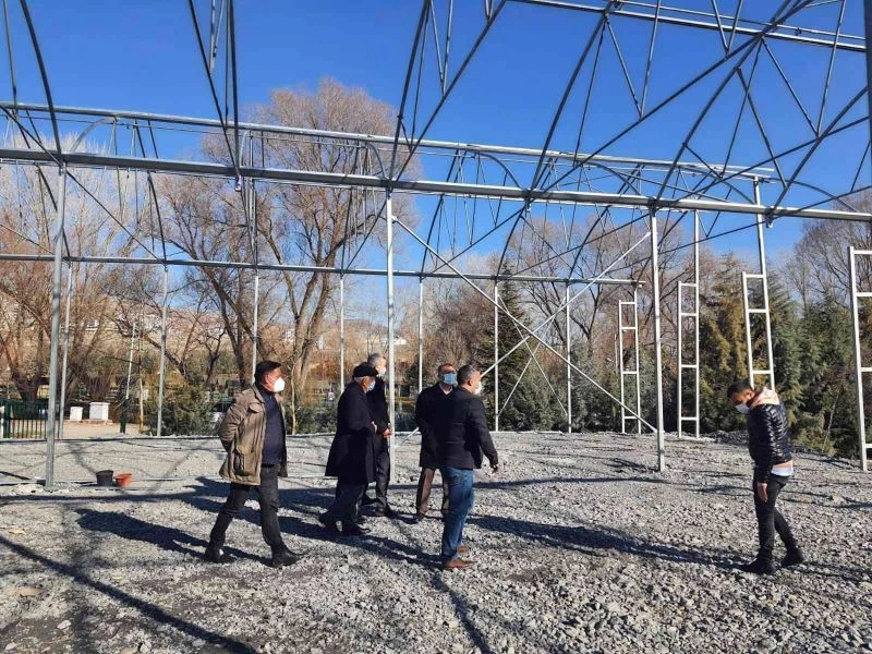 Yenimahalle Belediye Başkanı Fethi Yaşar, Yakacık Mesire Alanı içerisine kurulan 2 bin 300 metrekarelik yeni sera inşaatında incelemelerde bulundu.