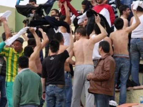 Yeniosmaniyespor`lu taraftarlardan çıplak protesto