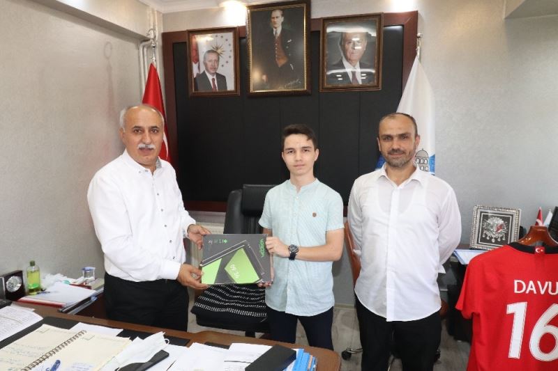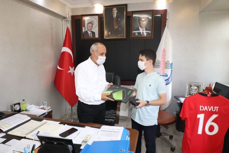 Yenişehir Belediye Başkanı Davut Aydın, Liseye Geçiş Sınavı’nda (LGS) Yenişehir birincisi Muhammed Yılgın’ı makamında ağırlayarak kendisine tablet hediye etti.