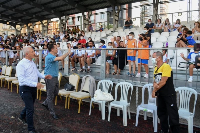 Konuşmaların ardından Başkan Özyiğit, Özgecan Tesislerinde 7 ayrı branşta düzenlenen kurslara katılan çocuklarla bir araya geldi, spor üzerine sohbet etti.
