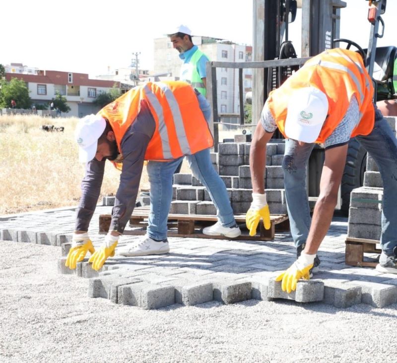 Diyarbakır’ın Yenişehir İlçe Belediyesi, sıcak asfalt serme çalışmalarına kilitli parke taşı ve bordür döşeme çalışmalarını da ekledi.