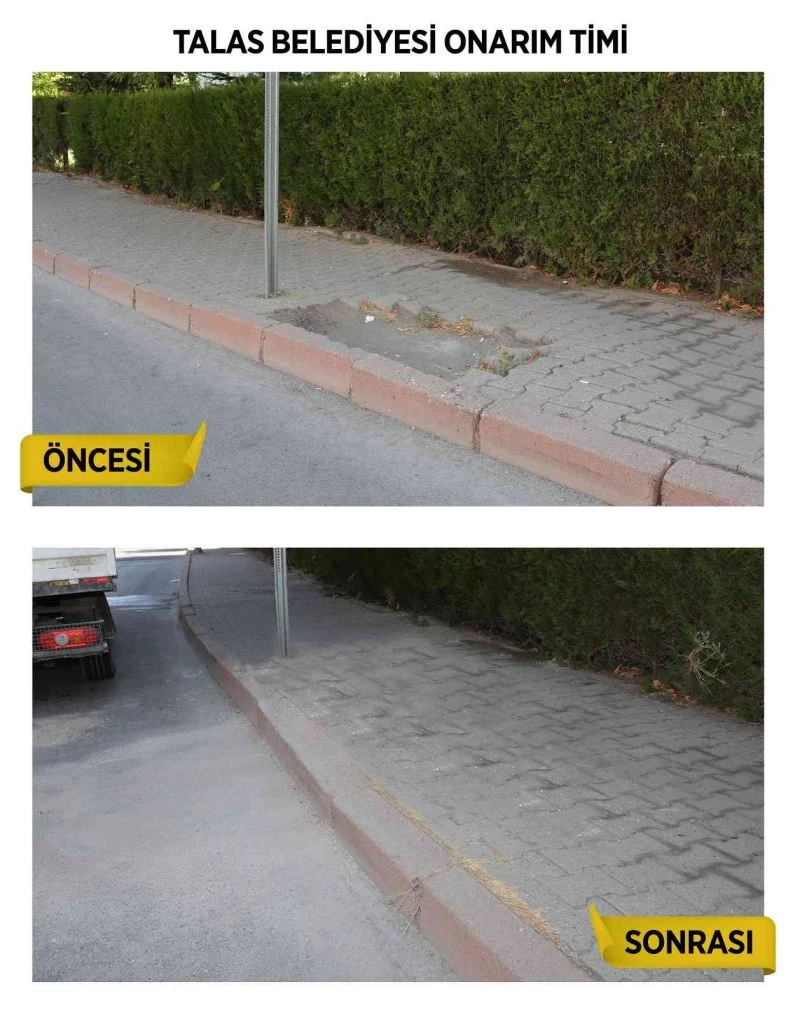 Talas Belediye Başkanı Mustafa Yalçın tarafından basit bakım-onarım işlerini yerine getirmek amacıyla hayata geçirilen ‘Onarım Timi’ 2 haftada 100’den fazla onarım çalışması gerçekleştirdi.