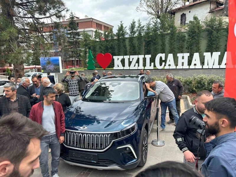 Yerli ve milli imkanlarla üretilen Türkiye’nin otomobili Togg, Kızılcahamam’da sergilendi. Vatandaşların beğenisine sunulan Togg büyük ilgi gördü.