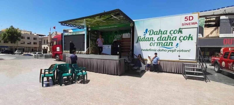 Orman Genel Müdürlüğü tarafından geçtiğimiz yıl yaşanan orman yangınlarının ardından bilinçlendirme amaçlı hazırlanan tır, Cumhuriyet Meydanına kuruldu. Öğrencilerin katıldığı etkinlikte, çocuklara ormanda yetişen ağaçlar, orman zararlısı böcekler hakkında bilgi verildi. Çocuklar, yangında personellerin giydiği kıyafetleri inceledi, geçici bahçede fidan dikmeyi öğrendi. Orman İşletme Müdürü İsmet Gümüş, Tır aracılığıyla ormanın çocukların ayağına getirildiğini ifade ederek, “Çocukları, doğa sevgisini kazanması ve geleceğe nefes olmaları için bilgilendiriyoruz. Çocuklara fidan dikimi, ormanlarımızda yaptığımız çalışmalar gibi konuları 5D sinemada çocuklarımıza aktarıyoruz. Orman Genel Müdürlüğümüze ve emeği geçen herkese teşekkür ediyorum’’ ifadelerini kullandı.