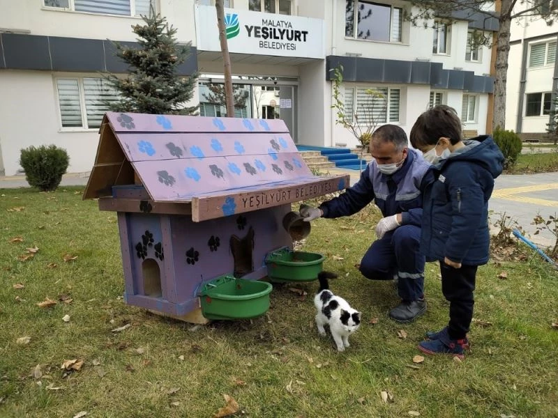 Malatya’nın Yeşilyurt ilçesinde korona virüs salgını sürecinde beslenme ve barınma sorunu yaşayan sokak hayvanları için Kedi ve Köpek Evleri projesi hayata geçirildi.