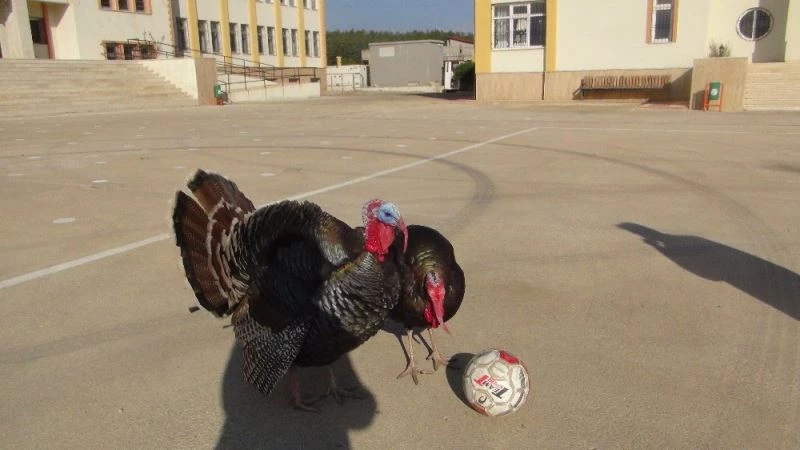 Hindilerin alıştığı öğrencilerden uzak kalmaları nedeniyle sıkılmış olabileceklerini de belirten Çomak, "Öğrenciler için yaptığımız bu okul bahçesinde çok ilginç bir olaya şahit olduk. Belki öğrencilerden, belki okul işlerinden bu güne kadar hindilerin futbola düşkünlüğünü fark edememiştik. Şimdi önlerine topu bıraksan, sabahtan öğleye kadar topun peşinde koşturuyorlar, oynuyorlar. bıraksanız, saatlerce top oynuyorlar, maç yapıyorlar. Bizim için başta bu hindiler olmak üzere okulumuzdaki tüm hayvanlarımız değerli. Öğrencilerimiz de çok değerli ama bunlar da öğrencilerimiz kadar değerli. Hayvanlara gözümüz gibi bakıyoruz" diye konuştu.