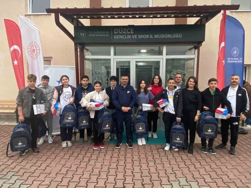 Düzce Gençlik ve Spor Müdürlüğünce Türkiye Sportif Yetenek Taraması ve Spora Yönlendirme projesi çerçevesinde öğrencilere spor malzemeleri desteğinde bulunuldu.