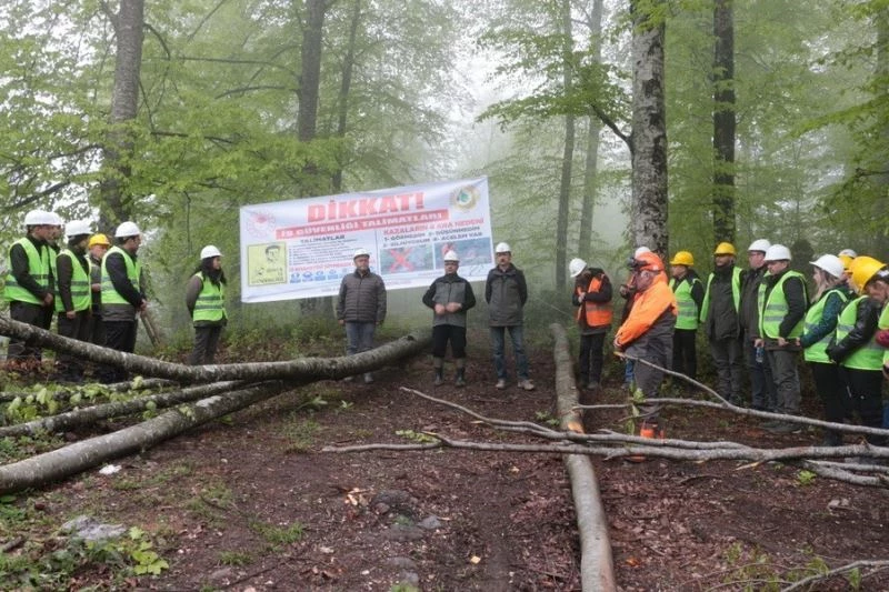 DÜZCE – Orman Muhafaza Memurları ile üretim işlerinde çalışan kooperatiflerin katılımıyla, üretim çalışmalarını ve iş güvenliği konularını içeren eğitim tatbikatı Yığılca Orman İşletme Müdürlüğüne bağlı Kurtkayası Orman İşletme Şefliğinde yapıldı.