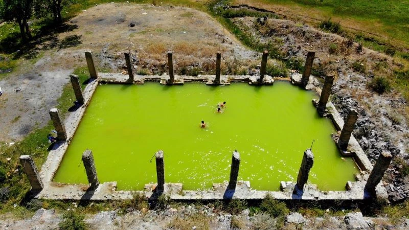 Erzurum’da yıllar içerisinde etrafını çevrelen duvarların yıkılmasıyla farklı bir görünüme sahip olan Akdağ Kaplıcaları soğuk ve şifalı suyuyla serinlemek isteyenlerin uğrak yeri haline geldi.