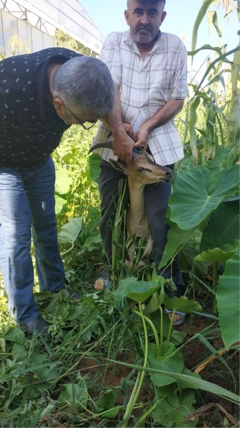 Mersin’in Bozyazı ilçesinde yılan tarafından sokulduktan sonra panikleyerek bir muz serasına sığınan yavru dağ keçisi, vatandaşlarca tedavisi yaptırılarak doğal yaşamına bırakıldı.