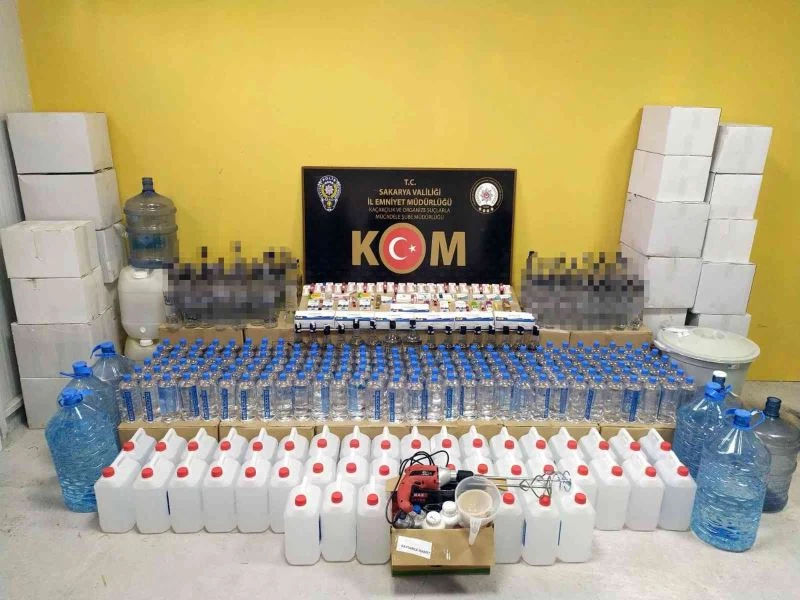 Sakarya’da yılbaşı öncesinde kaçak/sahte içkiye yönelik polis ekiplerince gerçekleştirilen operasyonlarda; yaklaşık 1 ton etil alkol, 82 adet sahte alkollü içkiyle doldurulmuş şişe, 64 litre el yapımı sahte alkollü içki ve alkol yapımında kullanılan kitler ele geçirilirken konuya ilişkin 4 şüpheli gözaltına alındı.