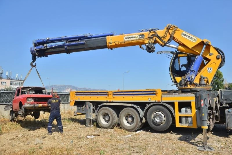 Yıldırım Belediyesi, ilçede terk edilmiş durumda bulunan ve görüntü kirliliği oluşturan hurda araçları kaldırıyor.