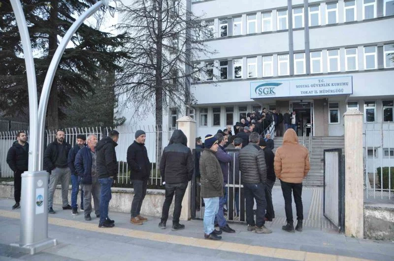 Tokat’ta yılın son günü EYT’liler prim borçlanması için soğuk havada SGK binası önünde uzun kuyruklar oluşturdu.