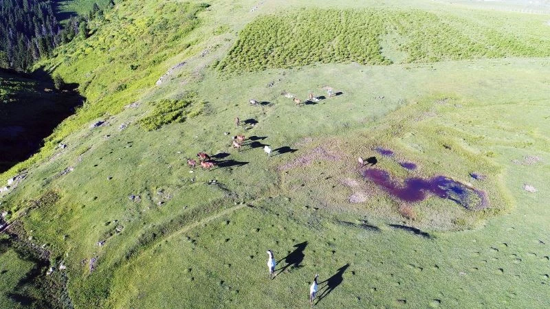 Ordu’nun 2 bin rakımlı Çambaşı Yaylası’nda yılkı atları sürüler halinde dolaşmaya başladı.