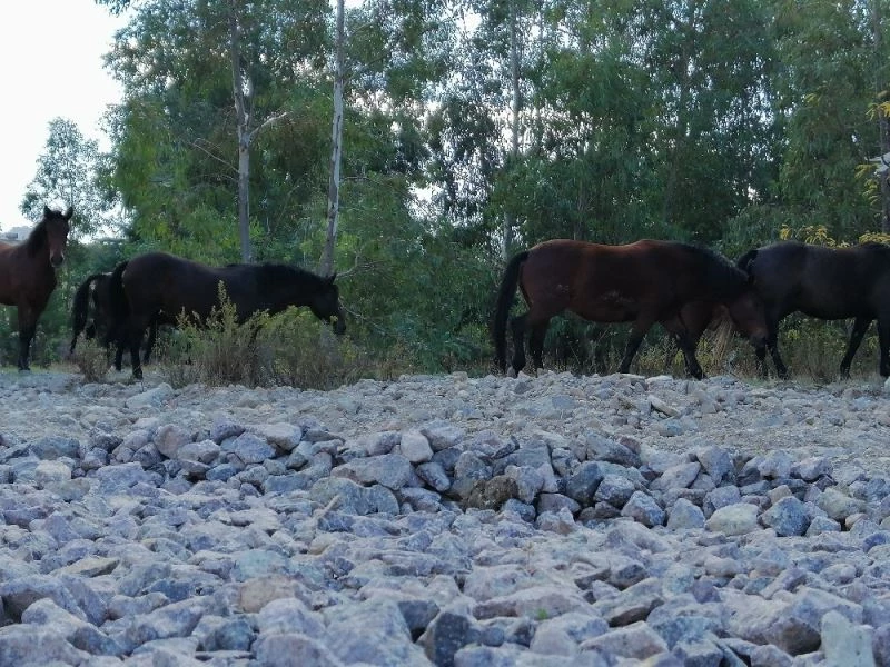 İzmir’in Yamandağlar Dağı Tabiat Parkında bulunan ve yaban hayatının en önemli simgelerinden olan yılkı atları, Bayraklı ilçesindeki Şehir Hastanesinin yakınlarına kadar inerek yol boyu beslendi.