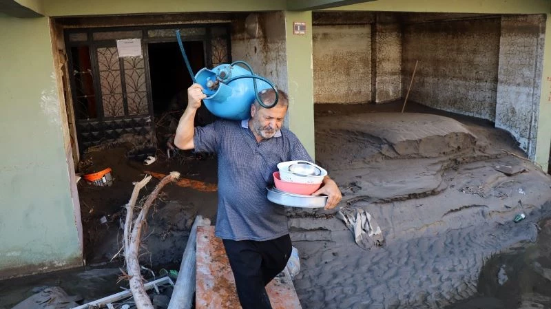 Kastamonu’nun Bozkurt ilçesinde Çarşamba günü meydana gelen sel felaketi, geride büyük bir yıkım bıraktı. Sel sonrasında birçok iş yeri ve bina zarar görürken, birçok kişi de hayatını kaybetti. Felaketin 7’nci gününde de kayıp vatandaşları arama ve enkaz kaldırma çalışmaları devam ederken, selde ağır hasar gören ve felaketin boyutunu gözler önüne seren Fatih 1 Apartmanının yıkım çalışmalarına devam ediliyor. Bir yandan vatandaşlar enkaz halinde kalan eşyalarını bulmaya çalışırken, diğer yandan da Fatih 1 Apartmanı’nın hemen yanında bulunan ve sel sonrası yıkım kararı alınan Yıldız Apartmanı’nda yaşayan vatandaşlar, eşyalarını tahliye etmeye çalışıyor. Taşıyabildikleri eşyaları sırtlayan vatandaşlar, yıllarca yaşadıkları binayı terk etmek zorunda kaldı. Bazı vatandaşlar ise yıkım çalışmalarını çaresiz gözlerle izledi. Enkaz sonrasında kalan çocuk oyuncakları ve eşyalar ise buruk görüntüler oluşturdu.