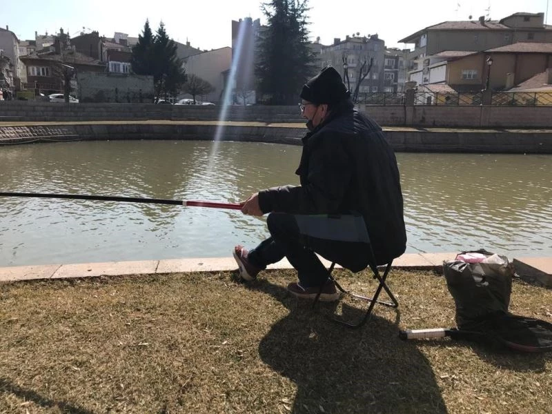 Şiddetli soğuklar sebebi ile uzun süre yüzeyi buz tutan Porsuk Çayı, son günlerde havalarda yaşanan sıcaklık artışından dolayı eski durumuna döndü. Sıcak ve güneşli havanın keyfini çıkarmak isteyen amatör balıkçı Hakkı Yılmaz, Porsuk Çayı kenarında sandalye ve oltasını alarak hem balık tutma zevkini hem de güzel havanın tadını çıkardı. Çocukluğundan beri balık tutmaya büyük bir tutkuyla bağlı olduğunu belirten Yılmaz, Porsuk üzerinde yer alan buzların erimesiyle birlikte kendisini hemen çay kenarına attığını söyledi. Yılmaz, “Eskiden farklı yerlere balık tutmaya da giderdim. Şimdi yaşımdan ve evime yakın olmasından dolayı buraya geliyorum. Emekliliğimi böyle değerlendirmeye çalışıyorum. Buzların erimesini ve havaların ısınmasını bekliyorduk. Bugün çok güzel bir hava var. Buraya gelerek olta atıp biraz Porsuk Çayı manzarasının keyfini çıkarıyorum” dedi.