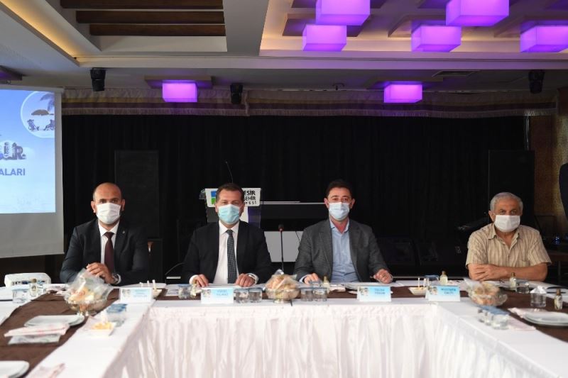 Turizmi 12 aya yaymak istediklerini söyleyen Başkan Yücel Yılmaz, her ilçenin kendine has değerleri olduğunu, bu değerleri ön plana çıkararak ilçeleri birer marka haline getirmeyi ve ekonomilerini hareketlendirmeyi hedeflediklerini belirtti. Toplantıda sahil bölgelerinde yürütülen çalışmalardan bahseden Başkan Yılmaz, Balıkesir’in turizmden daha fazla pay almasını için ulaşımdan alt yapıya, sağlıklı içme suyundan peyzaj düzenlemesine kadar çok sayıda proje yürüttüklerini söyledi.