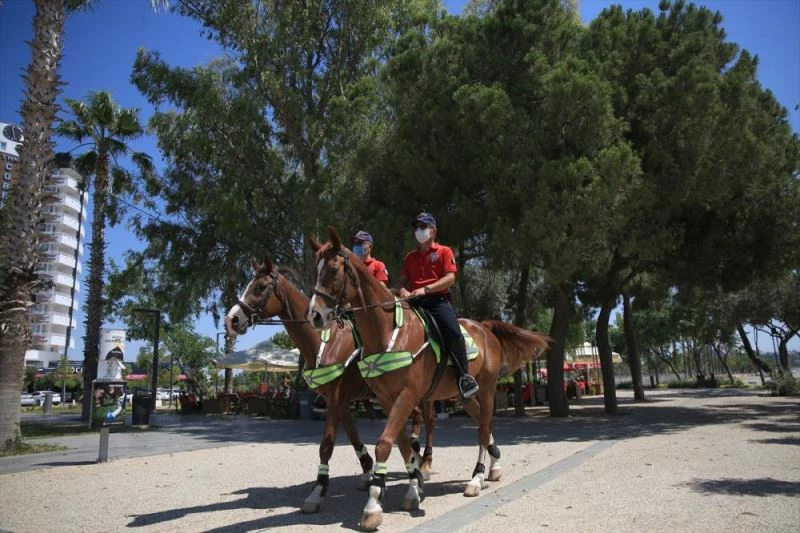 Atli Polis Birligi ekibi, sahil bandinda devriye gezerek kisitlamaya uymayanlari ikaz etti.