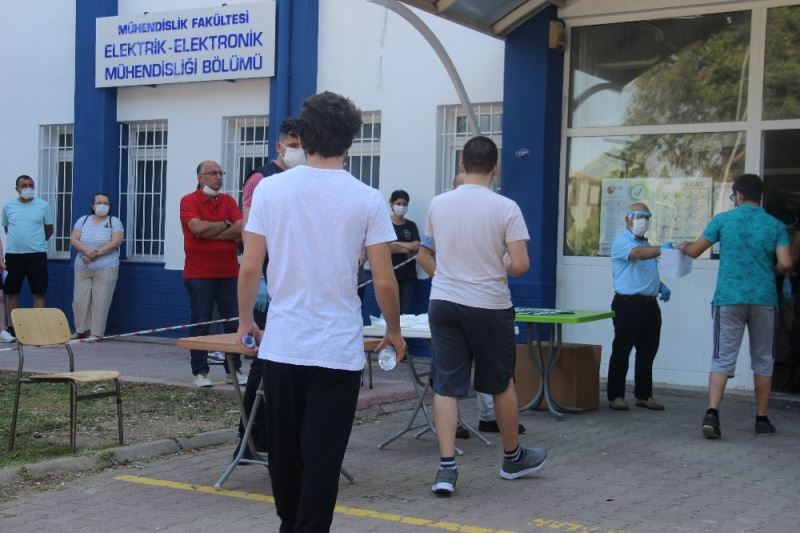 YKS’nin ilk oturumu olan TYT’nin dün gerçekleştirilmesinin ardından üniversite adayları, bugün de AYT ve Yabancı Dil Testi (YDT) heyecanını yaşıyor. İkinci oturum AYT saat 10.15’te başladı ve 180 dakika sürecek. İzmir’de de korona virüs tedbirleri kapsamında düzenlenen sınavda, binalara girişlerde sosyal mesafe uyarısı yapılırken adaylara maske dağıtılarak elleri dezenfekte etmeleri sağlandı. Sınava girecekleri okul ve fakülte binalarına gelerek kapıda bekleyen öğrenciler, sınıflara tek tek ateşleri ölçülerek ve sosyal mesafeyi koruyarak alındı. Sınav görevlileri sosyal mesafenin korunması konusunda vatandaşlara uyarılarda bulundu. Sınava girecek adayların ve velilerin de bir hayli heyecanlı olduğu görüldü.