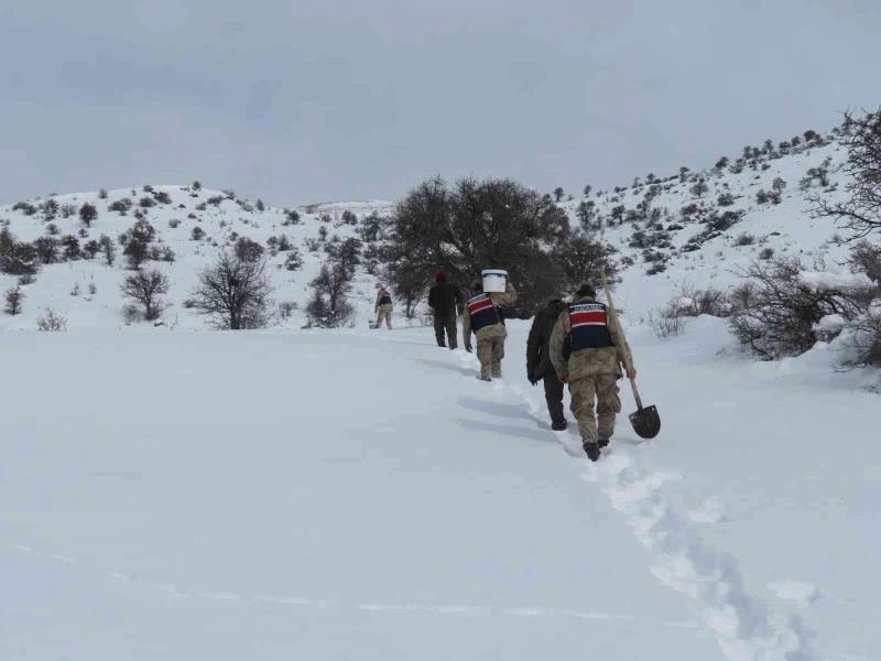Yoğun kar yağışı sonrası yaban hayvanları unutulmadı