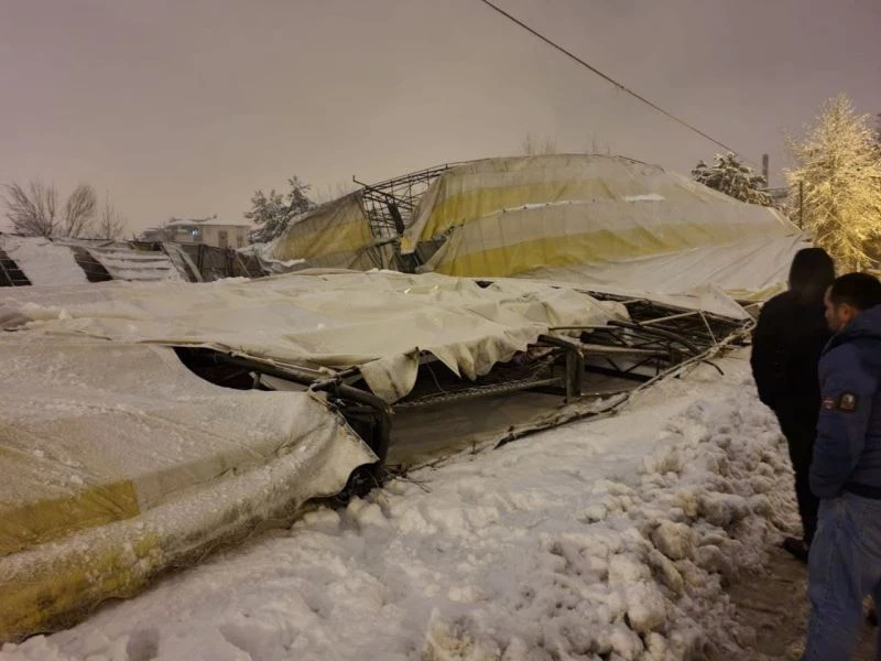 Yoğun kar yağışına dayanamayan halı sahanın çatısı çöktü