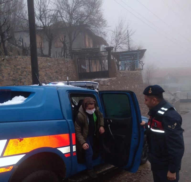 Yoğun kar yağışında mağdur olan vatandaşa jandarma desteği
